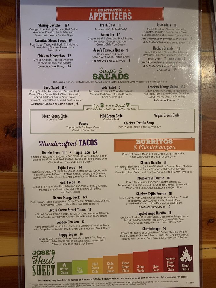 Introducing the menu at Jose Muldoon's, a Tex-Mex gem located in Colorado Springs, is a treat for anyone craving delicious and flavorful dishes. With a wide range of appetizers, including the mouthwatering Shrimp Ceviche and Joses Famous Queso, your taste buds are in for a treat. Indulge in handcrafted tacos like the Bacon Mango Pork Taco or the Voodoo Chicken Taco, each bursting with unique flavors. Don't miss out on their refreshing soups and salads, such as the Taco Salad or the Chicken Mango Salad. The restaurant offers a cozy atmosphere with friendly staff and is dog-friendly, making it a perfect spot for a casual dining experience. With great happy hour specials and a full bar, Jose Muldoon's is a go-to destination for Tex-Mex enthusiasts looking for a memorable dining experience.